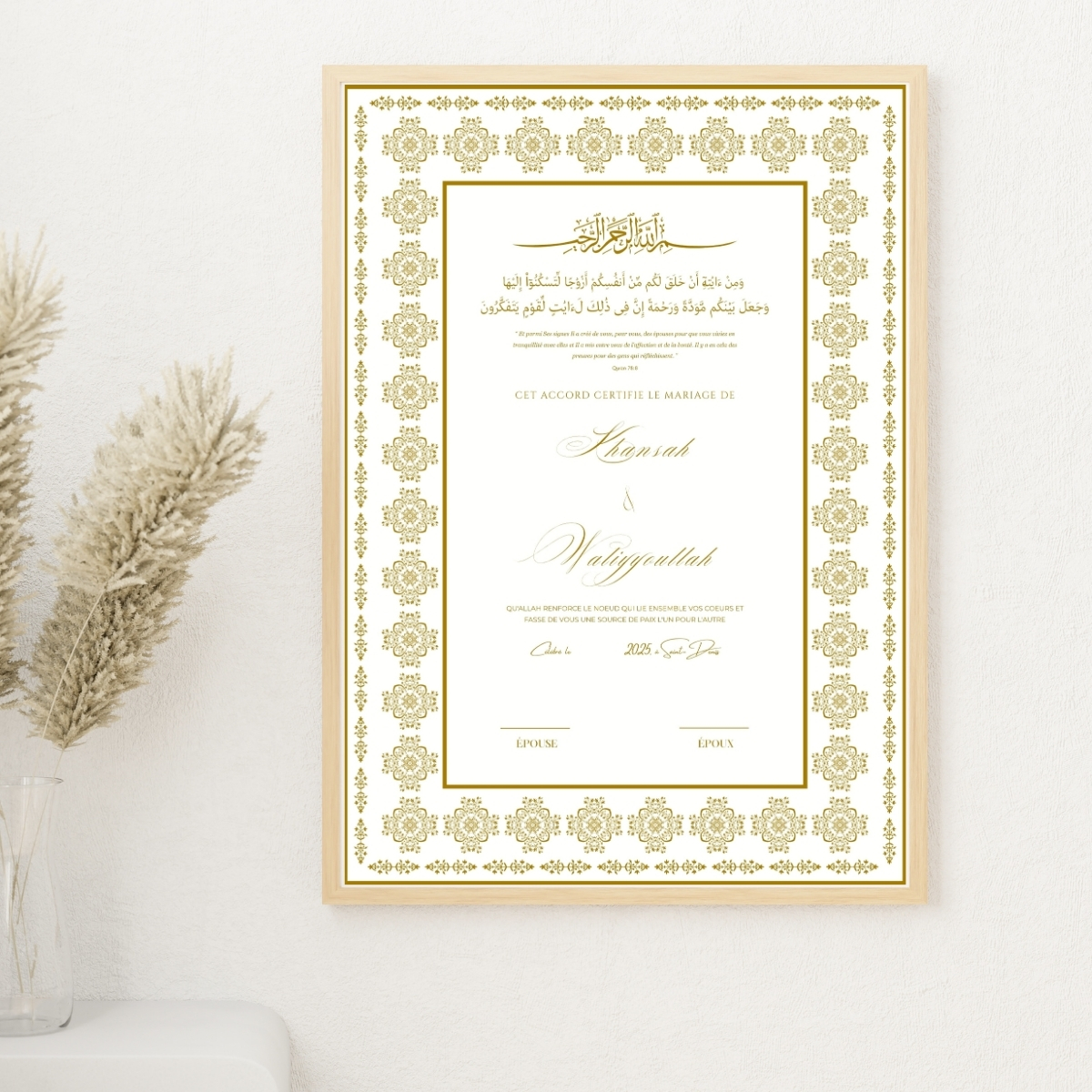 Pour toute demande personnalisée (modification de la mise en page, du texte, de la typographie, des couleurs, etc.), veuillez nous contacter directement par mail : contact@certificatmawadda.com.