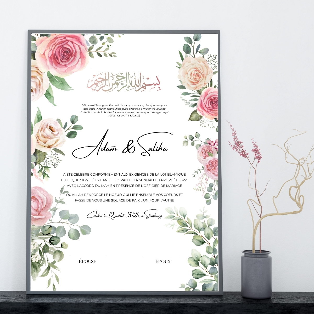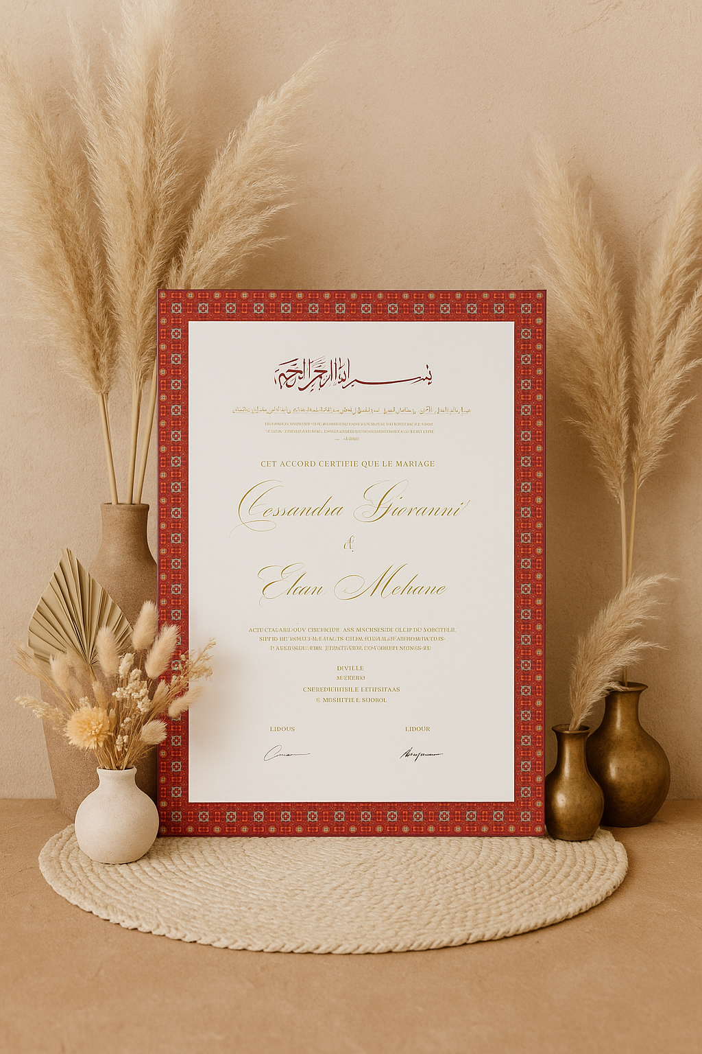Pour toute demande personnalisée (modification de la mise en page, du texte, de la typographie, des couleurs, etc.), veuillez nous contacter directement par mail : contact@certificatmawadda.com.